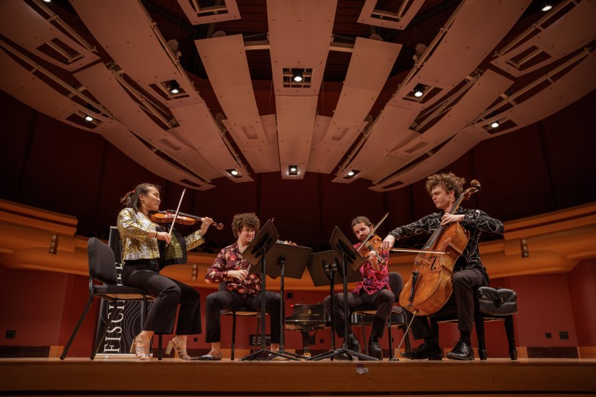 The players met at Oberlin College and won the Gold Medal and BIPOC Prize at the 2023 St. Paul String Quartet Competition soon after forming their ensemble. In addition to championing works by underrepresented composers, they integrate non-traditional styles, genres and voices in their repertory. But, according to Ma, “we also enjoy playing 20th-century repertory. I mean, we love Bartók.”