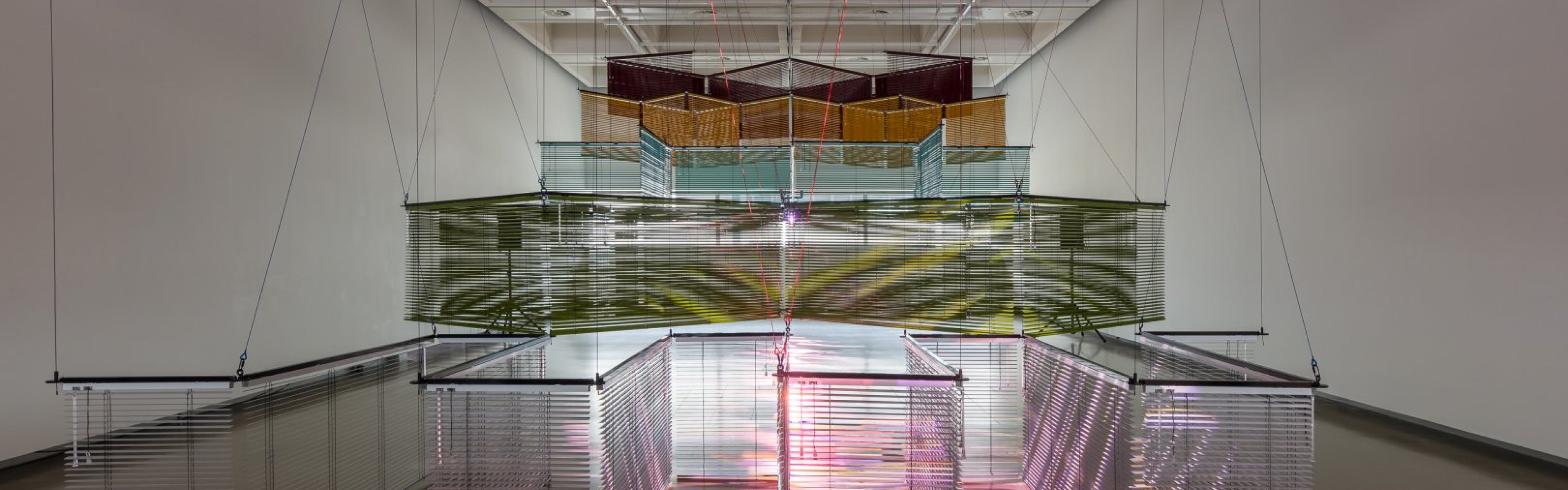 MOCA curator Clara Kim traveled to the UK in 2024 to see Yang’s sculpture: a staircase-like structure of ascending Venetian blinds and two moving spotlights set to Yun’s music. It was Kim’s idea to collaborate with the LA Phil.