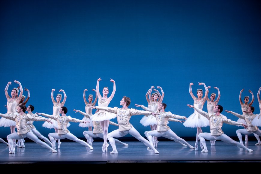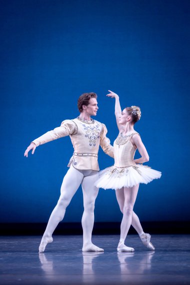 In a superb cast, Misa Kuranaga and Fernando Caratallá floated and soared through their waltz meters. Madeline Woo was a dynamic sensation in the principal solo role. using her arms to torque her tight, electric spins. In lifts she seemed to change direction in midair, whipping her gaze from left to right and back. She also collapsed, a great dancer suddenly brought low. It was a dramatic, disarming moment, one of several heightened by conductor Martin West’s sensitive rubatos.