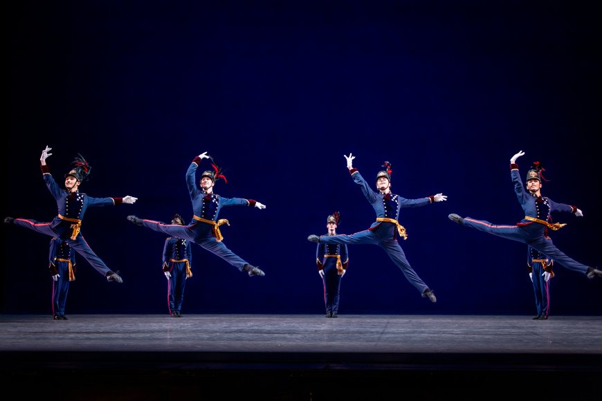 With the closing Stars and Stripes, it was time to strike up the band with John Philip Sousa marches. As sheer spectacle, the piece is one volcanic eruption after another of crisp steps, Day-Glo tutus, and endless volleys of stiff-spined salutes. I thought the men took best-in-show honors with their spring-loaded toy-soldier jumps and spins. Cavan Conley was their fleet, able captain. The finale is a feat of high-energy traffic control. It all felt like a time capsule from an America that exists only as a kind of retrograde fantasy now.
