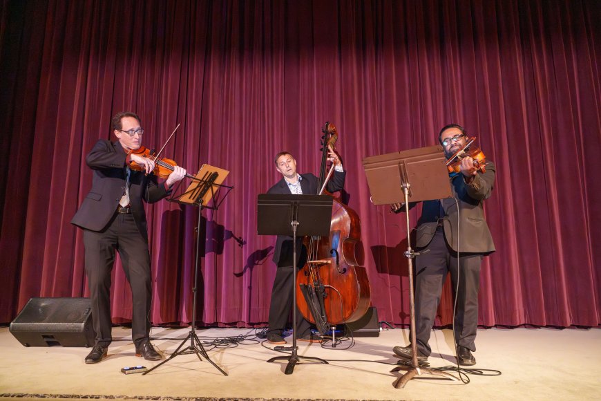 The group warmly and professionally executed a variety of works. They started with “Divertimento in Bb No. 8 for String Trio” by Joseph Haydn, then proceeded to the swing standard “Exactly Like You” by Jimmy McHugh. Two tangos followed: “Flor de Lino, Vals Criollo” by Hector Stamponi and “La Puñalada, Gran Milonga Tangueada” by Pintin Castellanos, both arranged by Jacobsen. The trio concluded with “Blues for Toussaint,” composed by Jacobsen.