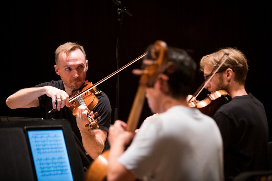 Wulliman himself composed the first piece of the afternoon, “The Late Edition,” which weaves a vivid tapestry from the motive of a minor third (the same interval as in the opening words to “Hey Jude.”) The motive is bounced around the quartet, which keeps a rhythmic drive of persistent pulsing notes before culminating in rich spectral chords inspired by Wulliman hearing a close-miked snare drum. What for Rihm was an agony at the gulf between “new music” and “old music” becomes, in The Late Edition, a welcome ambivalence to historical divides between the avant-garde and minimalism.