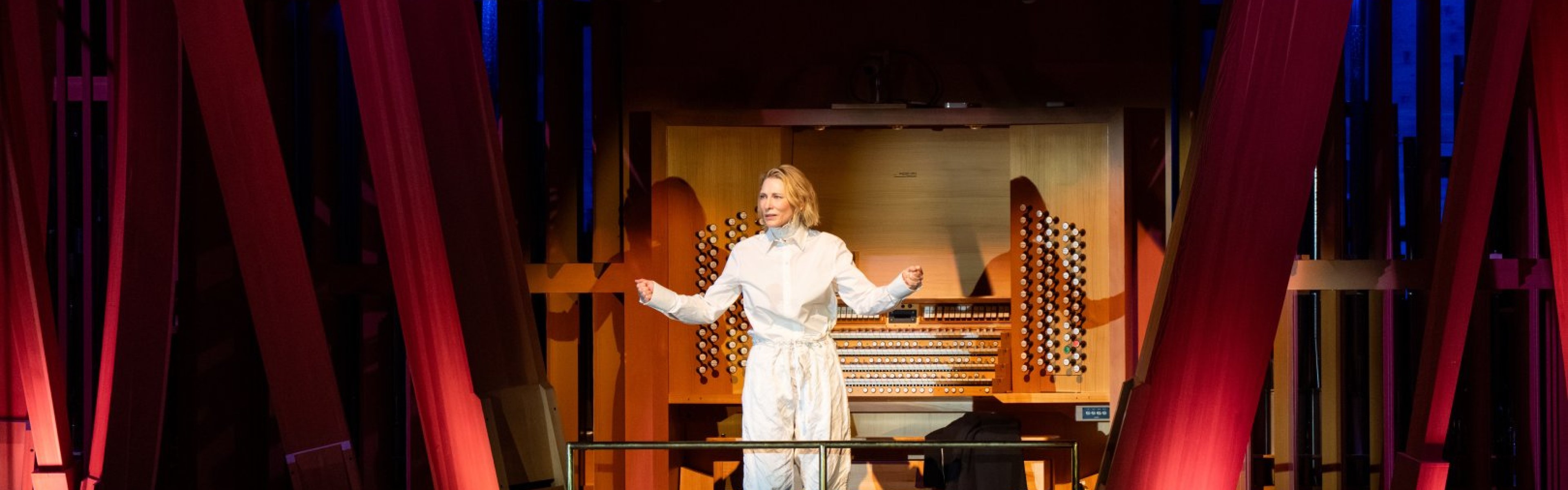 Blanchett delivered her text in a clear, dramatic tone from different outposts on the Disney Hall stage, finally ending up in the organ loft urging the Dutch – and by implication, us – to rise up “so inquisitions are no more,” dancing wildly as the reprise of the Overture’s last minute blazed. “Guaranteed this will not be presented at the Kennedy Center,” I heard myself saying afterwards.