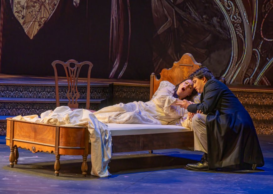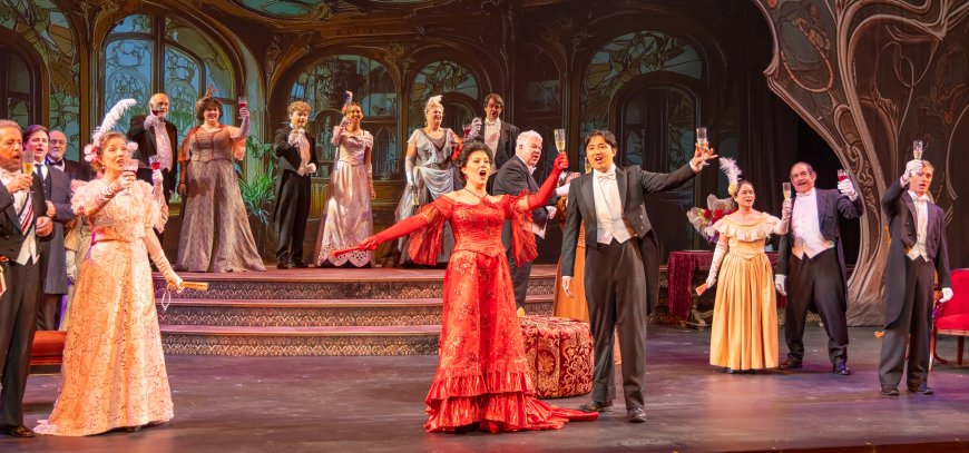 Giuseppe Verdi’s La traviata, one of the great works of his middle period, rests on a three-legged stool of characters: Violetta Valéry, the warmhearted titular courtesan; her young lover Alfredo Germont; and Giorgio Germont, Alfredo’s protective father. That stool is not well balanced in Livermore Valley Opera’s production, seen on Sunday, Sept. 28, at the Bankhead Theater.