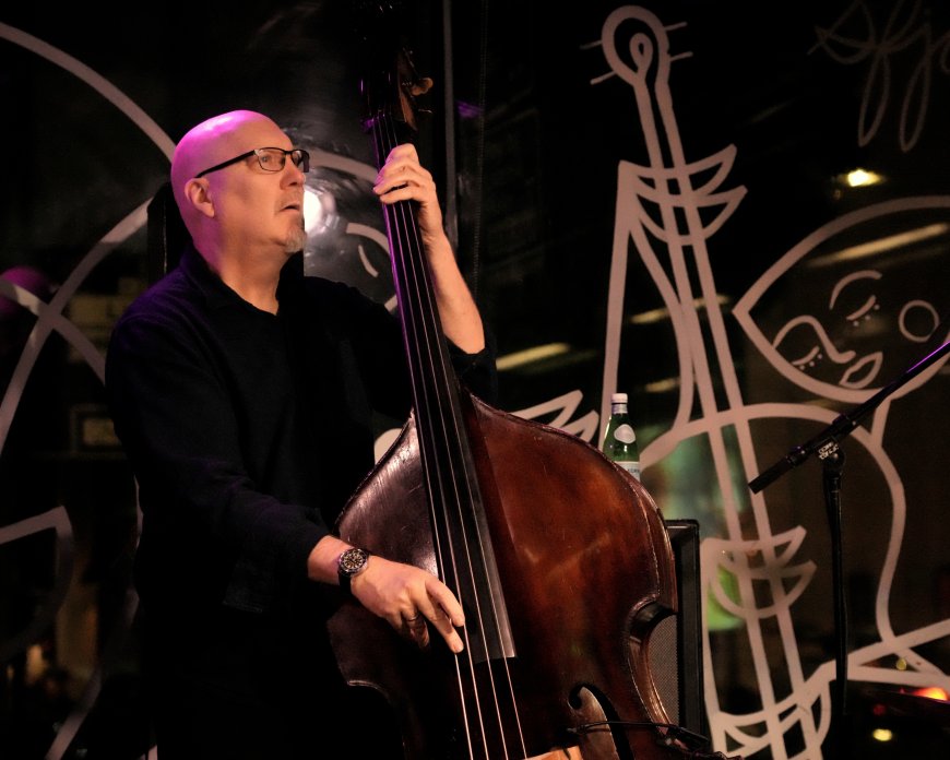 Colley provided the bulk of the set’s material, including the album’s mysterious title track. His episodic “85.7% Of You” exemplified the trio’s egalitarian approach, with the bassist leading the melodic line. Simon’s touch, warm and crisp, often blended with Colley’s bass, creating burnished wooden-metallic tones.