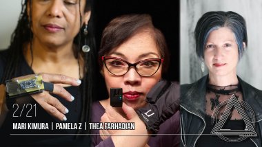 Mari Kimura (violin & electronics), Pamela Z (voice & electronics), and Thea Farhadian (violin and electronics) will perform solo works and trio improvisations for violins, voice, live electronics, and gesture-controlled instruments.