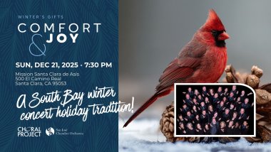 For one night only, on Sunday, December 21st, experience πππ£π©ππ§βπ¨ ππππ©π¨: πΎππππππ & π ππ, the South Bayβs beloved holiday concert tradition. In partnership with the SAN JOSE CHAMBER ORCHESTRA, The Choral Project returns with music to warm the spirit and brighten the season, featuring luminous works by Vivaldi, Biebl, Mendelssohn, and more. Let the sounds of hope fill your heart in this radiant celebration.
