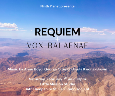 The central focus of the program are the premieres of Ursula Kwong-Brown's Requiem for the Living and Where the I Comes From and for voice, cello, and piano. In Requiem for the Living, Kwong-Brown draws inspiration from her own grief to reconsider the nature of ritual, memorial, and memory, constructing a highly personal reconceptualization of the traditional Requiem form. Where the I Comes From sets an apocalyptic poem by Josh Bell, hoping to acknowledge our darkest impulses in order to find a path to greater kindness and compassion.