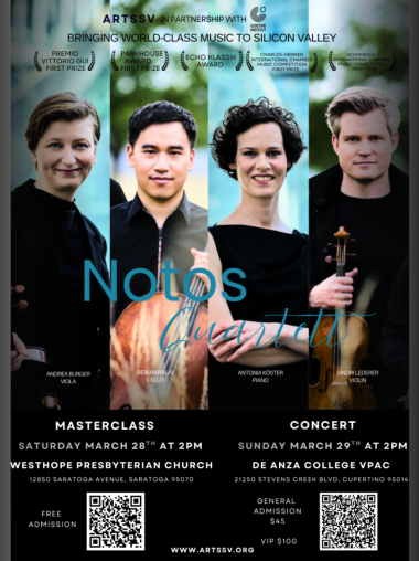 Acclaimed by critics as “one of the finest chamber music performances I have heard anywhere,” Notos Quartett is known for its wide-ranging repertoire, spanning classical masterworks, rediscovered treasures, and contemporary compositions. Their artistic vision bridges tradition and innovation—honoring the established canon while championing new works and reviving overlooked repertoire.