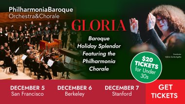 Celebrate the holidays with Valérie Sainte-Agathe and Philharmonia Baroque Orchestra and Chorale in Vivaldi’s Gloria—a radiant choral masterpiece that bursts with joy and shines with new brilliance on period instruments, evoking the festive sound of 18th-century Venice. Corelli’s Christmas Concerto captures the stillness of a Baroque Christmas Eve, closing with a tender “Pastorale.” The program also introduces new voices: the U.S. premiere of Caroline Shaw’s The Holdfast and the world premiere of Roderick Williams’ Quem Pastores Laudavere.